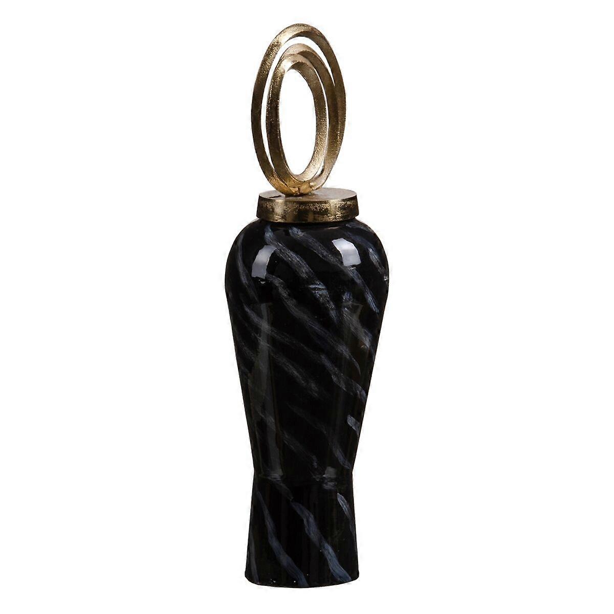 Vase Kristall Schwarz Gold Metall 15 x 15 x 46 cm