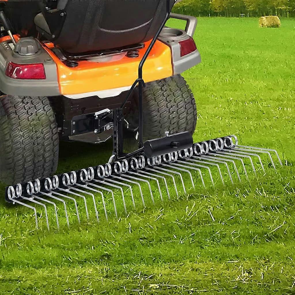 Der Vertikutierer für Aufsitzmäher kann Moos und Unkraut leicht beseitigen und große Rasenflächen effizient vertikutieren, damit das Gras dichter wächst. Langlebiges Material: Stahl ist ein außergewöhnlich hartes und starkes Material. Er bietet Robustheit und Stabilität. Die Verzinkung bietet einen besseren Schutz gegen Korrosion und eignet sich für Produkte, die im Freien und in rauen Umgebungen verwendet werden.Effiziente Beseitigung von Moos und Rasenfilz: Der Rasenlüfter entfernt effektiv verschiedene Arten von Abfällen wie Stielen, Schnittgut, Wurzeln und unverrottetem Laub, was ihn zu einer geeigneten Wahl für große Gärten macht. Durch dieses Verfahren gelangen Luft, Wasser und Dünger zu den Wurzeln, was zu einem gesünderen Rasen beiträgt.Schnelles und effektives Vertikutieren: Mit den 14 robusten Zacken mit Doppelfedern und einer Vertikutierbreite von 109 cm versehen, lässt sich dein Rasen mit diesem Rasenlüfter schnell und effizient vertikutieren. Die Federzacken sind hitzebehandelt und damit sehr widerstandsfähig, um selbst harte Aufgaben mühelos zu bewältigen.Einfache Verbindung: Mit der Kupplungsvorrichtung kann der Vertikutierer einfach und sicher an den Aufsitzmäher oder Rasentraktor angeschlossen werden. Farbe: SchwarzMaterial: Verzinkter StahlGesamtabmessungen: 109 x 57,5 x 67 cm (L x B x H)Arbeitsbreite: 109 cm5,14 mm Zinken aus wärmebehandeltem Federstahl14 Doppelfedern aus StahlGewicht: 11,7 kgZusammenbau erforderlich: Ja