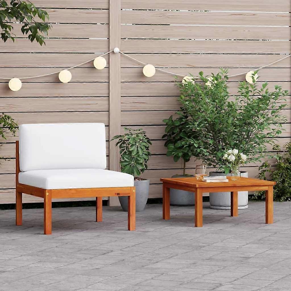 Schaffen Sie mit diesem zweiteiligen Garten-Lounge-Set mit geflochtener Rückenlehne einen faszinierenden und entspannenden Lounge-Bereich, von dem Sie schon immer geträumt haben. Genießen Sie einen entspannten, sonnigen Nachmittag oder Sommerabend mit Ihrer Familie und Freunden auf diesem modularen Lounge-Set Dieses Lounge-Set aus massivem Akazienholz mit Öl-Finish ist langlebig, stabil und lässt sich leicht mit einem feuchten Tuch reinigen. Mit der aufwendig gearbeiteten Rückenlehne aus geflochtenem Seil verleihen die Gartenmöbel jedem Außenbereich eine elegante Note. Die dick gepolsterten Kissen sorgen für höchsten Komfort. Dank des modularen Designs sind sie flexibel und lassen sich leicht an jede Umgebung anpassen. Kombinieren Sie sie mit anderen modularen Elementen, um Ihre eigene Garten-Lounge ganz nach Ihrem Geschmack zu gestalten Mit SeilrückenlehneKissenfarbe: CremeweißSeilfarbe: SchwarzMaterial: Massives Akazienholz mit Ölfinish, SeilMaße Mittelsofa: 65 x 65 x 60 cm (B x T x H)Maße Tisch: 63 x 63 x 30 cm (L x B x H)Stärke Sitzkissen: 6 cmStärke Rückenkissen: 10 cmMontage erforderlich: JaLieferumfang:1 x Mittelsofa1 x Tisch1 x Rückenkissen1 x Sitzkissen