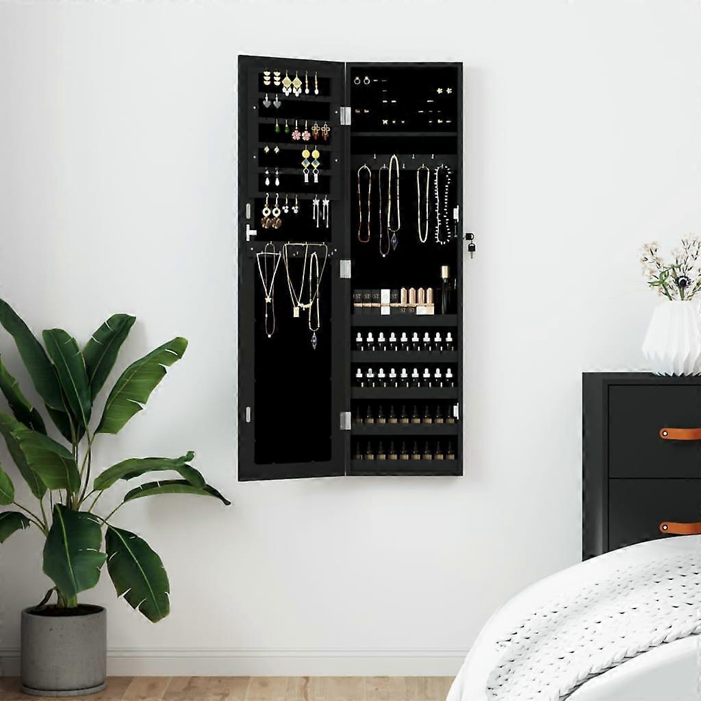 Bewahre deinen Schmuck und deine Parfums diskret und elegant in diesem stilvollen Spiegel-Schmuckschrank auf Langlebiges Material: Holzwerkstoff ist ein Material von außergewöhnlicher Qualität mit glatter Oberfläche, das sich durch Festigkeit, Stabilität und Feuchtigkeitsbeständigkeit auszeichnet. Aus Holzwerkstoff gefertigt, lässt sich der Schmuckschrank mit einem feuchten Tuch leicht reinigen. Reichlich Stauraum: Der Spiegelschrank bietet zahlreiche Haken, Bügel und Ablagen, um deinen Schmuck übersichtlich und griffbereit aufzubewahren.Praktischer Spiegel: Mit seinem großen Spiegel ist dieser Schmuck-Organizer ideal, um sich vorzubereiten und zu schminken.Sorgfältiger Schutz: Der Schrank zur Schmuckaufbewahrung hat eine abschließbare Tür und wird mit 2 Schlüsseln geliefert, um die Sicherheit deiner Sachen zu gewährleisten. Der weiche Stoffbezug im Inneren verleiht nicht nur Eleganz, sondern schützt auch deine geliebte Wertsachen vor Kratzern.Platzsparendes Design: Hänge das Spiegel-Schmuckkästchen mit den mitgelieferten Haken über die Tür oder montiere es an der Wand, um Platz zu sparen. Gut zu wissen:Schrauben für die Wandmontage sind im Lieferumfang enthalten. Farbe: SchwarzMaterial: Holzwerkstoff, Glas, Stoff (100% Polyester)Füllung: SchaumstoffGesamtabmessungen: 30 x 8,5 x 106 cm (B x T x H)Abschließbares DesignZusammenbau erforderlich: Ja