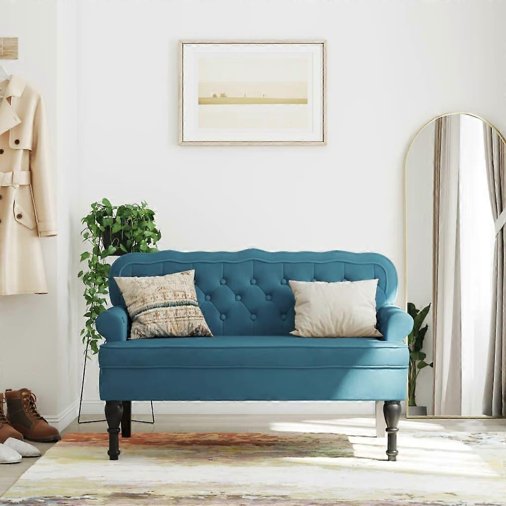 Sitzbank mit Rückenlehne Blau 119,5x64,5x75 cm Samt