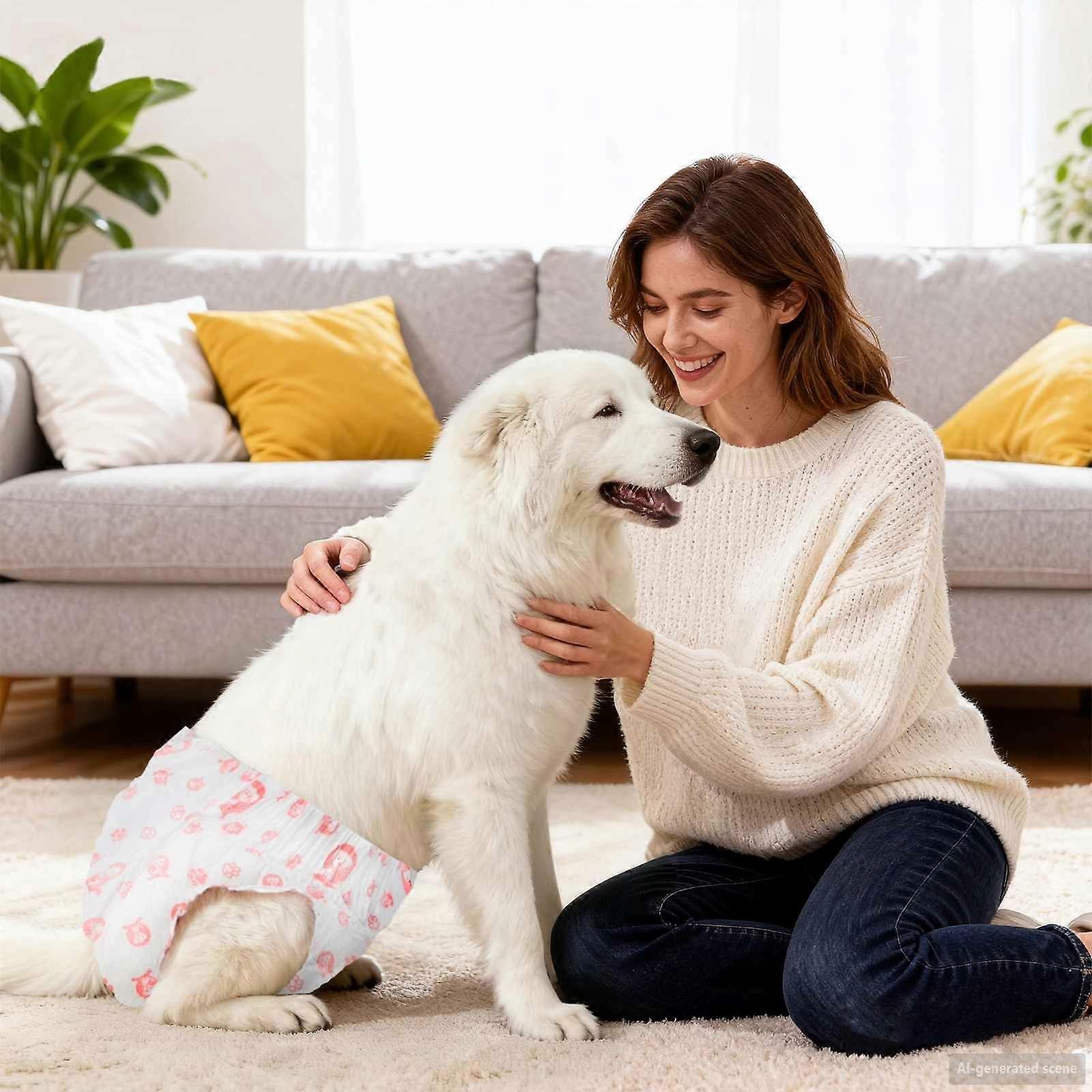 Diese Wegwerf Hundewindeln für Hündinnen bieten Hundebesitzern eine praktische Lösung für die Sauberkeit im Innen und Außenbereich. Dank verstellbarer Verschlüsse passen sich die Hundewindeln verschiedenen Hunderassen optimal an und sorgen für einen sicheren und bequemen Sitz. Die weiße Farbe vermittelt ein hygienisches Erscheinungsbild und unterstützt ein sauberes Umfeld. Die Einweg Hundewindeln eignen sich ideal für Welpen im Training, ältere Hunde oder Hunde mit gesundheitlichen Einschränkungen und schützen zuverlässig Teppiche, Böden und Polstermöbel. Vliesstoff-Konstruktion mit weicher Oberfläche sorgt für hohen Tragekomfort und ist besonders sanft zur Haut der Hündin. Das leichte und zugleich robuste Material ist atmungsaktiv, reduziert Hautreizungen und schließt Flüssigkeit zuverlässig ein. Hochabsorbierende Technologie mit Zellstoff, Flockenpulpe und Superabsorber Polymer (SAP) bindet Feuchtigkeit zuverlässig. Die dreilagige Struktur hält die Hundewindel trocken und auslaufsicher auch bei längerer Tragedauer und reduziert den Bedarf an häufigem Wechseln. Fellfreundliche Verschlüsse sorgen für sicheren Halt ohne Ziepen oder Verkleben des Fells. Die Hundewindel bleibt zuverlässig an Ort und Stelle und passt sich den Bewegungen der Hündin angenehm an. Verstellbare Schwanzöffnung ermöglicht eine optimale Passform für unterschiedliche Schwanzformen und Hunderassen und sorgt für zusätzlichen Komfort bei Alltag und unterwegs. Für den Innen und Außenbereich geeignet bieten die Einweg Hundewindeln zuverlässigen Auslaufschutz bei Spaziergängen, Tierarztbesuchen, Reisen oder im Alltag zu Hause und sind ideal für aktive Hundebesitzer.