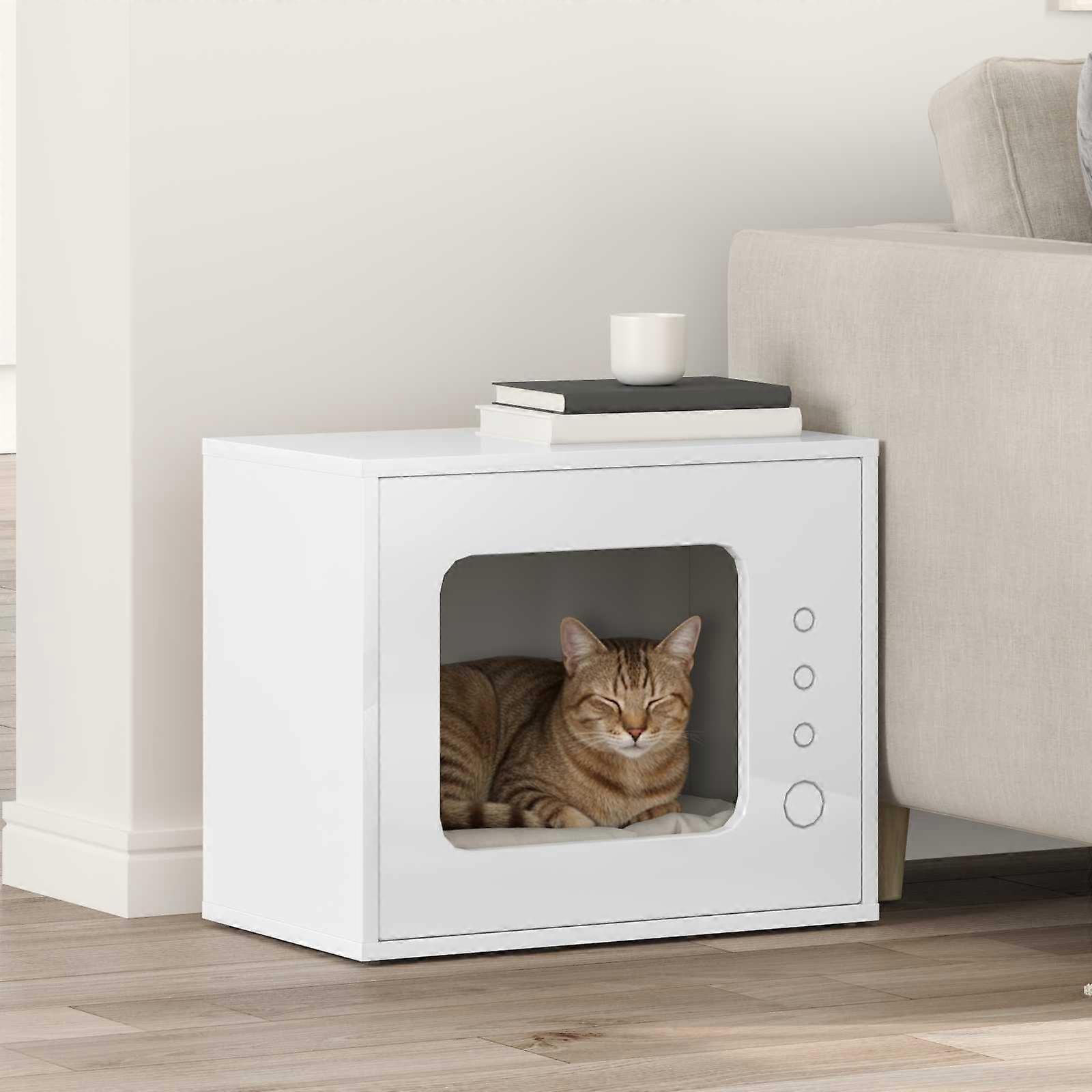 Katzenhaus Glänzend Weiß 51 x 30 x 42,5 cm Holzwerkstoff