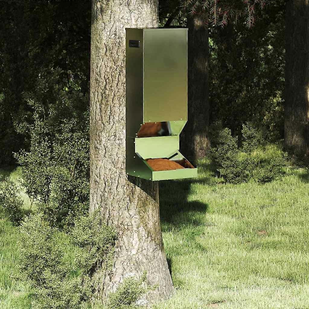 Dieser Metall-Rehfütterer ist ein unverzichtbares Tool für alle, die Rehe und andere Wildtiere in ihren Garten locken möchten. Mit seinem modernen Design kombiniert er Einfachheit und Funktionalität und passt super zu modernen Gärten sowie zu traditionellen Außenbereichen. Das schlanke Stahl-Design macht ihn zu einer stabilen und ansprechenden Ergänzung für jeden Garten oder Waldweg und seine robuste Bauweise sorgt dafür, dass er allen Wetterbedingungen standhält, während er das ganze Jahr über eine effektive Fütterungslösung bietet. Stahlbau: Hergestellt aus robustem Stahl, der Fütterer ist für dauerhafte Langlebigkeit und Wetterbeständigkeit gemacht. Seine stabile Konstruktion widersteht den Elementen sowie täglichem Gebrauch und bietet zuverlässige Funktionalität für Outdoor-Fans. Das Stahlmaterial sorgt für einen klaren Look und die nötige Stärke für die beabsichtigte Kapazität. Praktische Funktionen: Mit angebrachten Griffen lässt sich der Fütterer einfach umstellen. Er kann leicht an einem Baum oder stabilen Struktur befestigt werden, was Flexibilität für die Nutzer bietet, um die besten Fütterungsplätze für Wildtiere zu finden. Das Design erleichtert die Nutzung und macht Tierpflege einfacher. Vielseitiges Design: Ob drinnen oder draußen, dieser Fütterer passt sich an die Umgebung an. In einem üppigen Garten oder auf einer rustikalen Terrasse fügt er sich harmonisch ein und bietet eine konstante Fütterungslösung, egal wie der Hintergrund aussieht. Sein modernes Design ergänzt viele Dekor-Stile, ohne aufzufallen. Empfohlene Verwendung: Ideal für Gärten, Terrassen und Wälder, der Fütterer ist eine zuverlässige Nahrungsquelle, die Rehe und andere Wildtiere anlockt. Seine Anpassungsfähigkeit macht ihn zur beliebten Wahl für Tierliebhaber und Hausbesitzer gleichermaßen. Einfache Wartung: Der Fütterer benötigt kaum Pflege – einfach mit einem trockenen Tuch abwischen, um sein schönes Aussehen zu erhalten. Diese unkomplizierte Pflege ermöglicht es den Nutzern, sich mehr auf die Freude an ihrem Außenbereich und den Wildtieren, die sie anlocken, zu konzentrieren. Farbe: SilberMaterial: Verzinkter StahlGesamtabmessungen: 28 x 30 x 80 cm (L x B x H)Gewicht: 4,9 kgKapazität: 3 kgLanglebigWetterfestWasserfestKapazität: 3 kgMit GriffenKann an einem Baum montiert werdenFür Innen- und AußenbereichMontage erforderlich: JaLieferumfang:1 x Rehfütterer