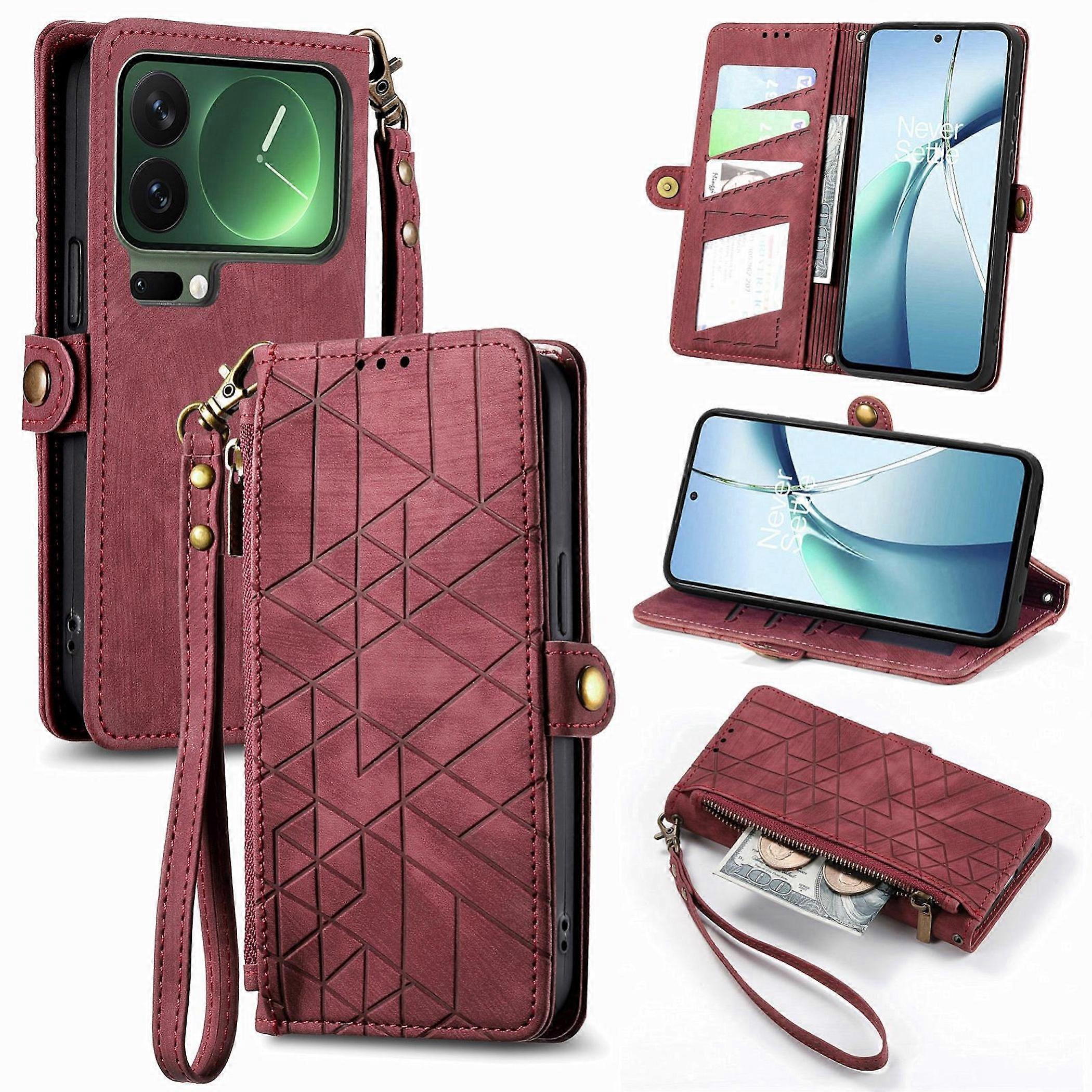 Für Xiaomi 17 Pro Geometric Kunstleder Zipper Book Hülle Rot