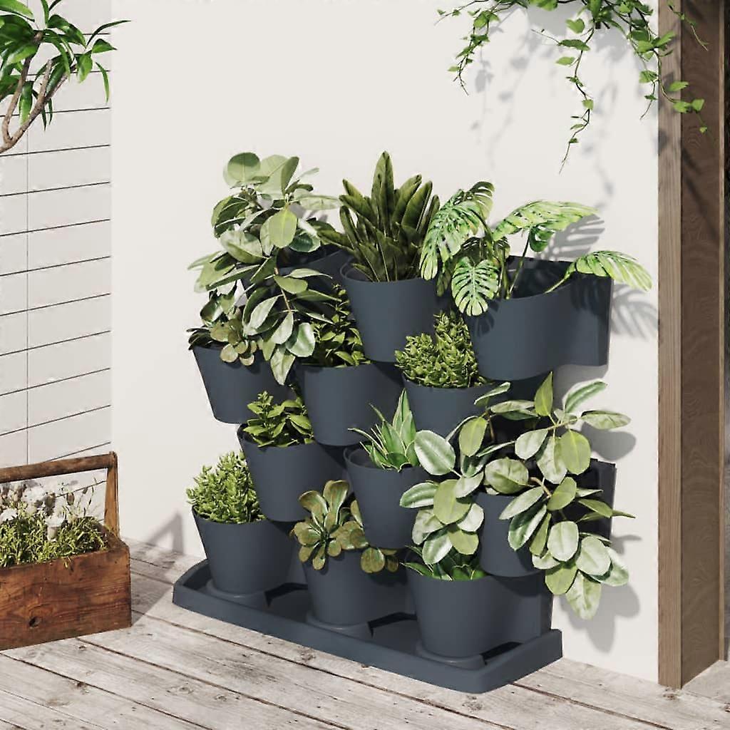 12-tlg. Vertikales Pflanzgefäße-Set Anthrazit Polypropylen
