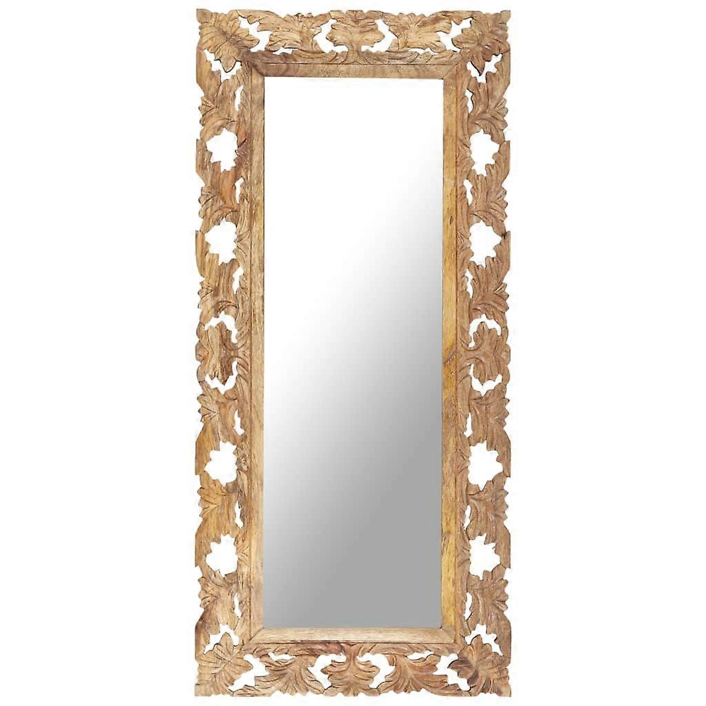 Spiegel Handgeschnitzt Braun 110x50 cm Massivholz Mango