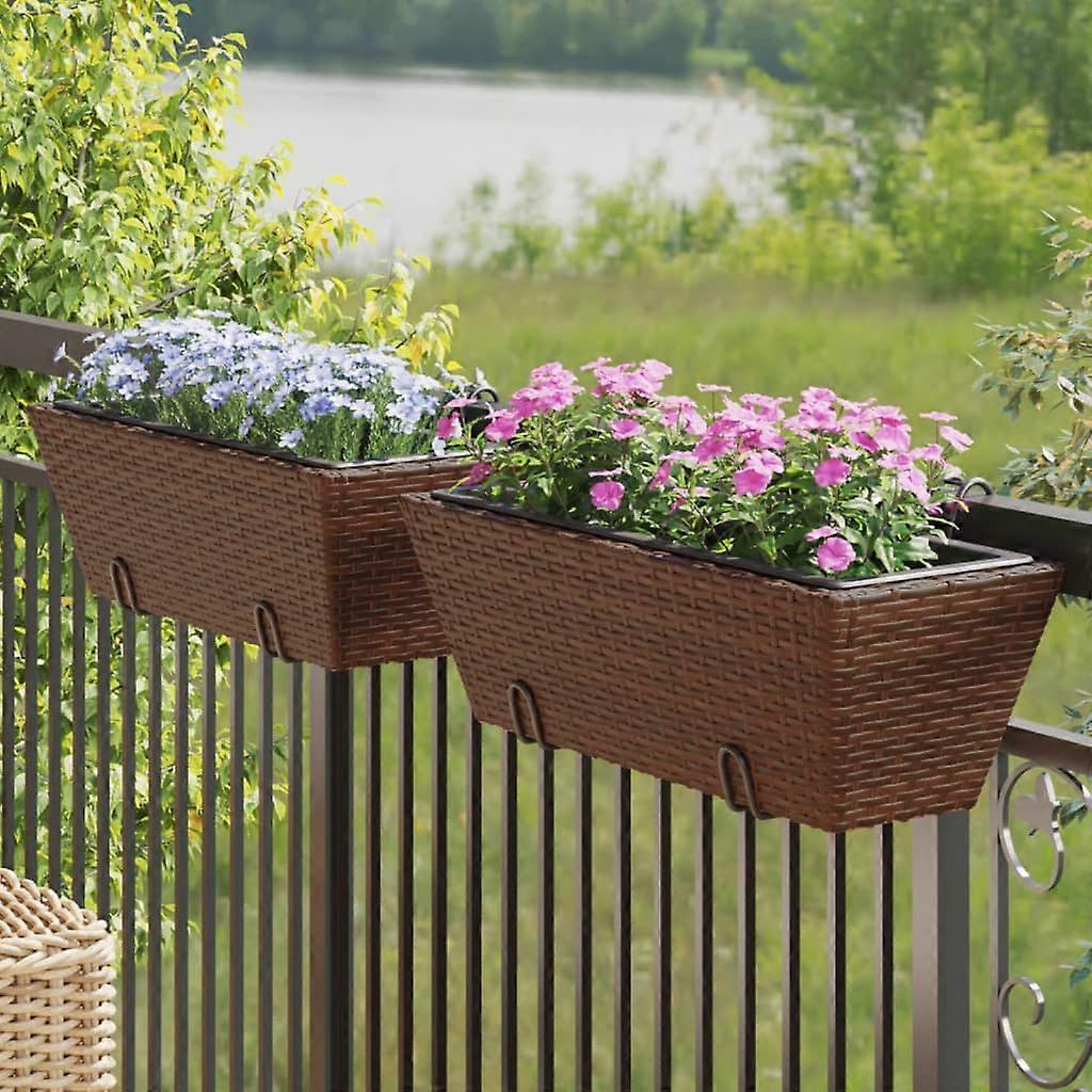 Pflanzkübel mit Haken 2 Stk. Braun Poly Rattan