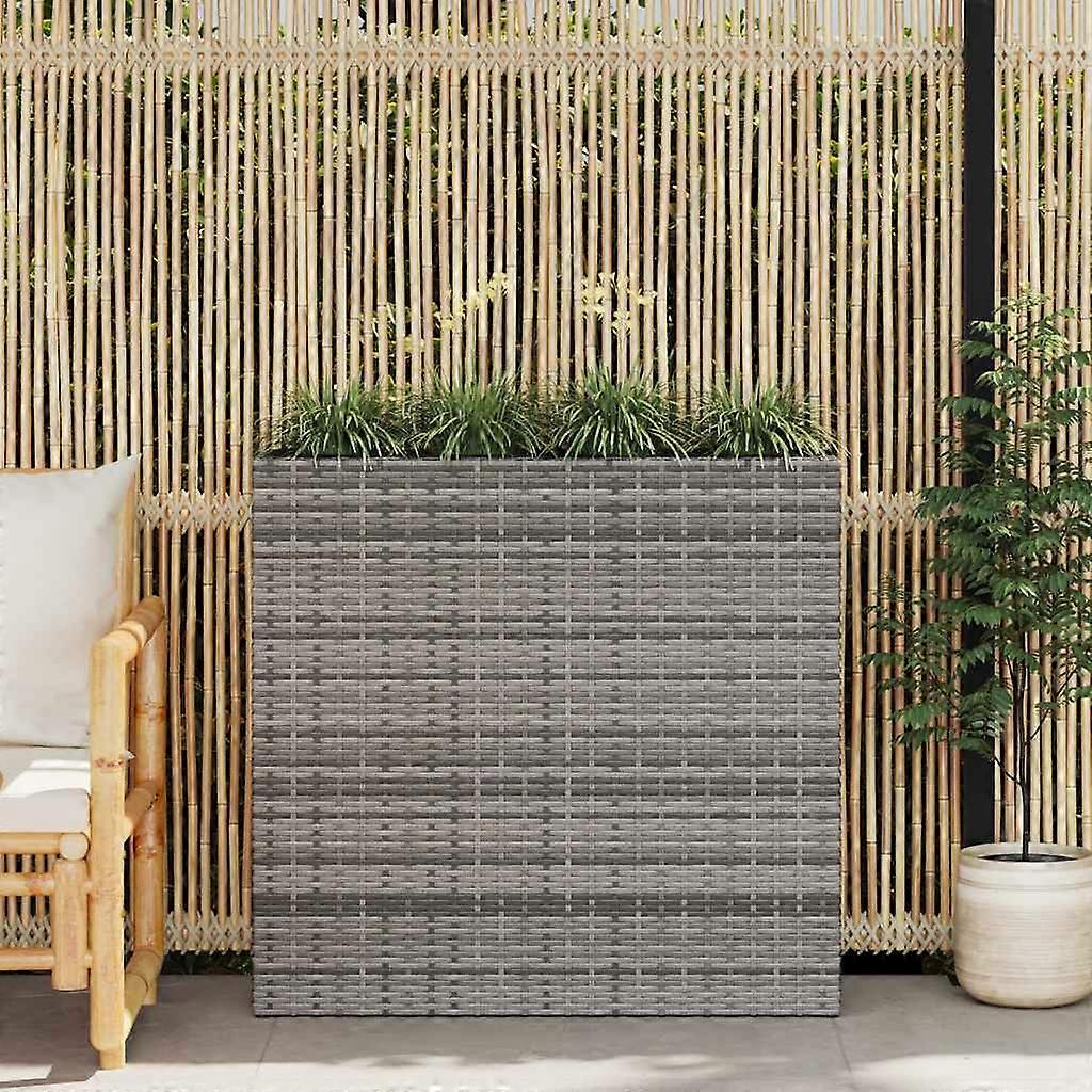 Garten-Hochbeet mit 4 Töpfen Poly Rattan Grau