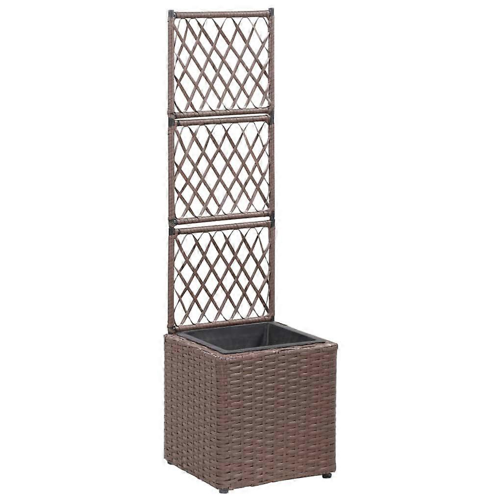 Hochbeet mit Rankgitter 1 Topf 30x30x107 cm Poly Rattan Braun