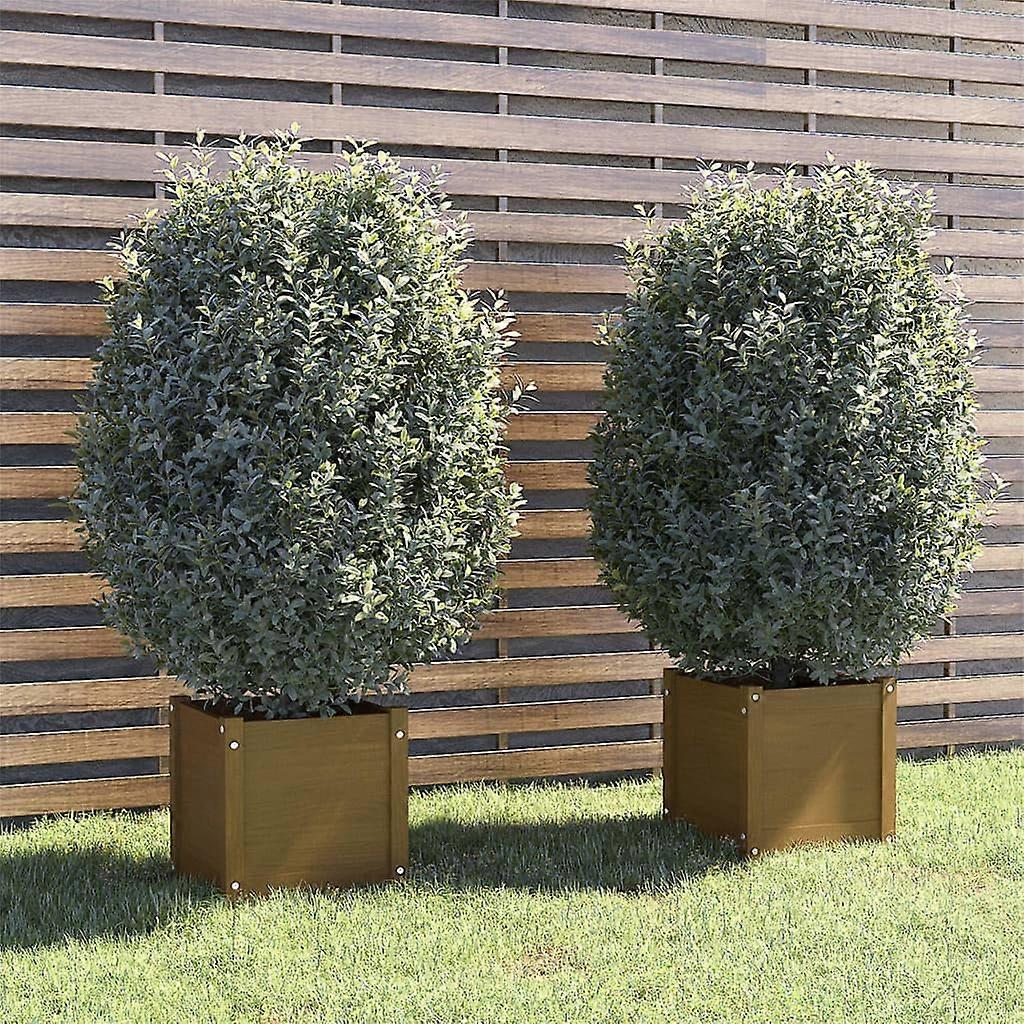 Pflanzkübel 2 Stk. Honigbraun 40x40x40 cm Massivholz Kiefer