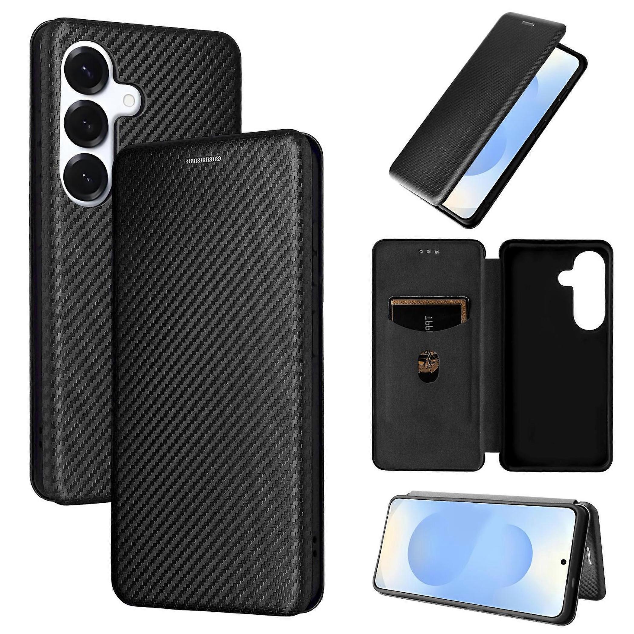 für Samsung Galaxy S26 5G Carbon Textur Design Flip Schwarz