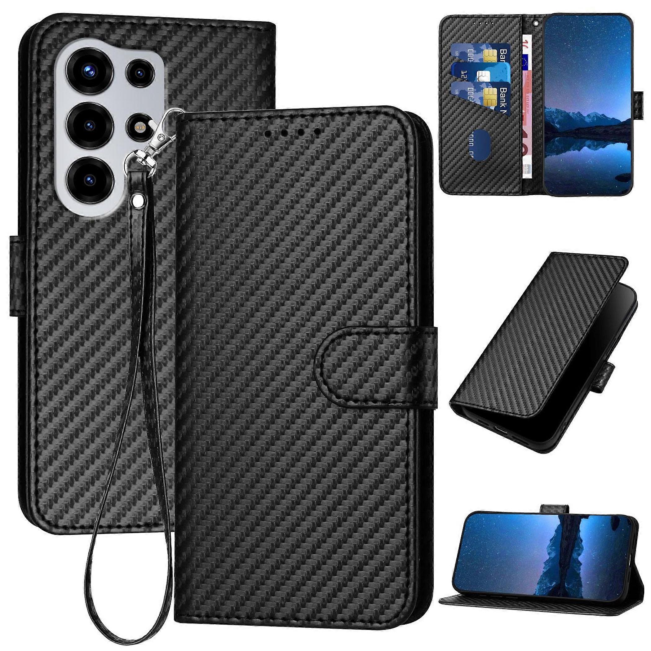 für Samsung Galaxy S26 Ultra 5G Carbon Textur Design Book Schwarz