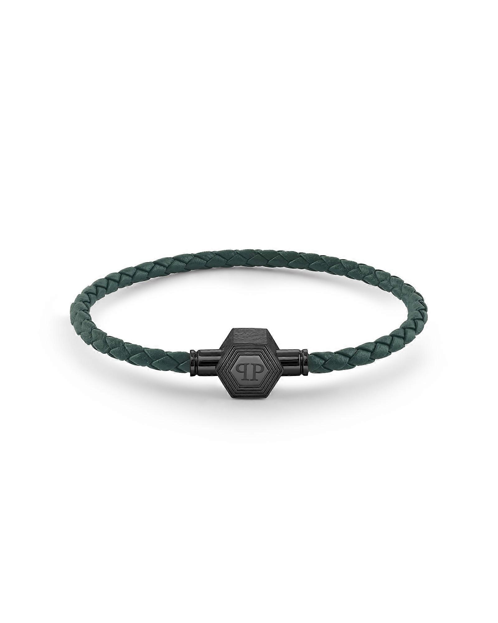 Philipp Plein Herren Armband Leder Edelstahl IP Gun PLEIN ENIGMA S PJ6GA01BS