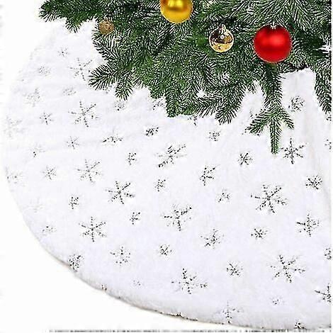 -White Christmas Tree Skirt Plush Snow Christmas Tree Decorations Faux Fur Carpet Christmas Tree Skirt White Snow Christmas Tree Base Cover Silver 7