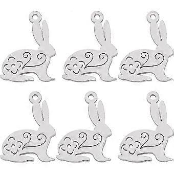 1 Box 16Pcs Rabbit Charms Bulk Easter Charm Stainless Steel Silver Spring Hollow Mini Bunny Cute Animal Pet Pendants Metal Charms for Jewelry Making C