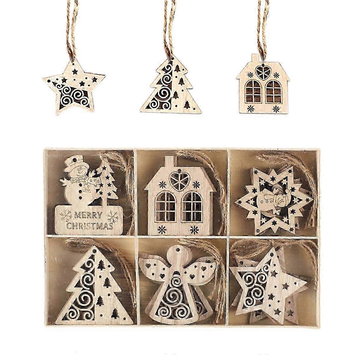 1 box hollow Christmas hanging ornaments creative wooden crafts Christmas ornaments