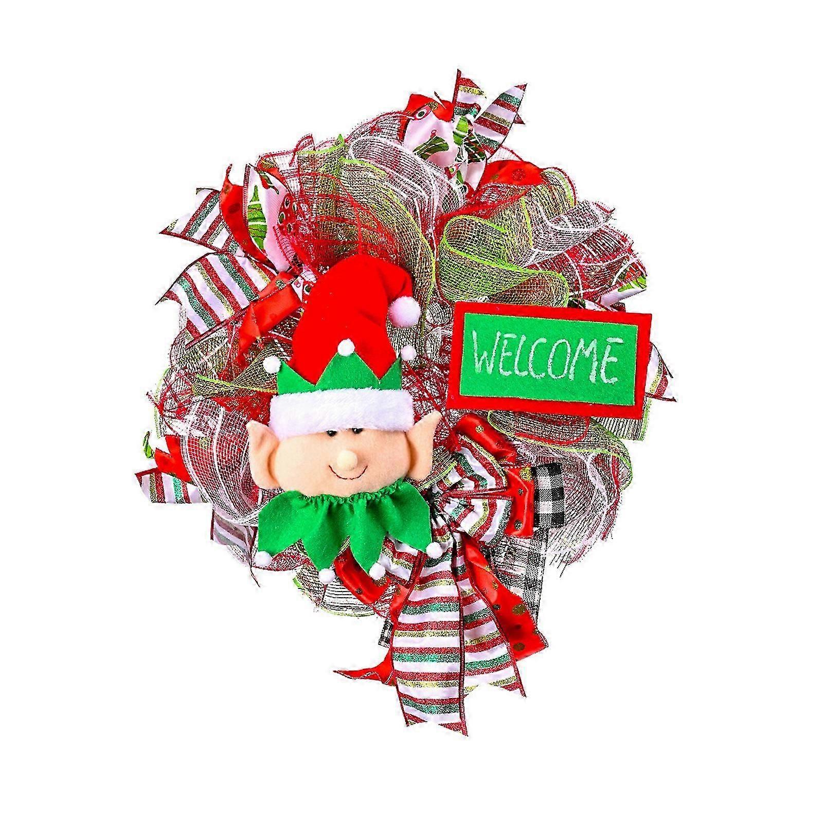 1 Christmas Elf Ribbon Wreath 40x25cm, made of fabric, ribbon, and PP cotton