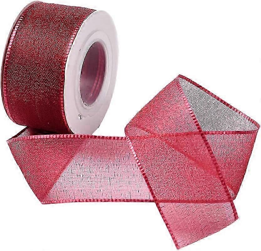 1 Inch Dark Red Organza Ribbon Christmas Sheer Mesh Ribbon Wired Silk Chiffon Transparent Clear Fabric Ribbons Bulk Roll with Spool for Sewing Making