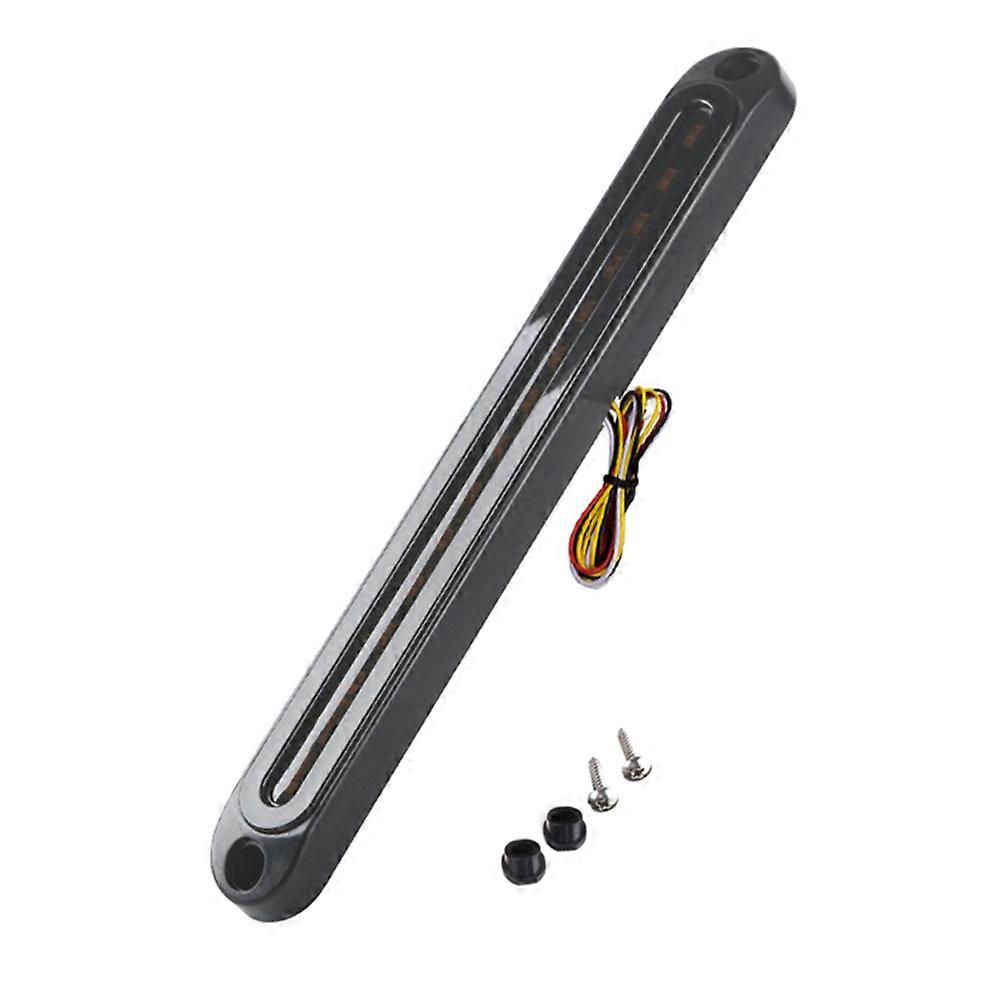 12-24V LED Tail Lamp 30LED Truck Brake Stop 3500K Twist Stop Light Brake Strip IP65 Waterproof 120lm for Pickup Truck Feature: 1. Ultra-Narrow Cut: This LED Tail Lamp Strip has a thin and elegant profile that allows for better heat distribution, ensuring optimal performance and longevity. Its compact design makes it easy to install in a variety of locations on trucks and trailers. 2. IP65 Waterproof: Made of high-impact ABS housing and sealed polycarbonate lenses, this third party brake light is built to withstand harsh environments. It is IP65 dustproof and waterproof, ensuring reliable performance in all weather conditions. 3. Versatile Use: Designed for heavy trucks, semi-trailers, cargo trailers, marine trailers, work vehicles, and wider or narrower ground vehicles that require high-quality spot lighting. The rear bar rear turn signal provides better visibility and safety on the road. 4. Multi-function Lighting: The LED tail light combines running lights, brake lights, turn signals and sequential lighting functions, allowing for comprehensive lighting of the truck. Increases safety by clearly indicating the vehicle's intentions and presence to other drivers. 5. Easy Installation: This brake for the foot strap is equipped with instructions for mounting hardware and wiring, making installation simple and hassle-free. It can be easily installed on the rear, sides, or front of the weight of a trailer or trailer, providing increased visibility and style. Specification: Origin: Mainland China Item Type: Brake Lights Model Name: LED Truck Strip Item Weight: 85g Interface Type: None Voltage: 12V-24V For Vehicle In Makes/Model: Universal Size: 250x27mm/9.8x1.1 inch Number of LEDs: 30 LED Type: 3030 Application: Light/Light Indicator/Tail Light Temperature & Color: 3500k, Yellow Light Shell Color: Black Luminous Flux: 120lm Waterproof Grade: IP65 Material: ABS+PC Working Temperature: -40°C+80 Lifespan: >30000hs Applicable Models: Automobile, Heavy Duty, Trailer Power Supply Cable: 16cm/6.3inch Mounting Open Distance: 23.3cm/9.2 inch M4 screws are applicable Technical Parameters: Lighting mode: high and low light plus flowing water Wiring: black negative line, red line for positive red light, white line for low driving light, yellow line for running low light Note:Due to the different monitor and light effect, the actual color of the item may be slightly different from the color showed on the pictures. Thank youPlease allow 1-2cm deviation measurement due to manual measurement. 1 x Light 1 x Mounting Accessories