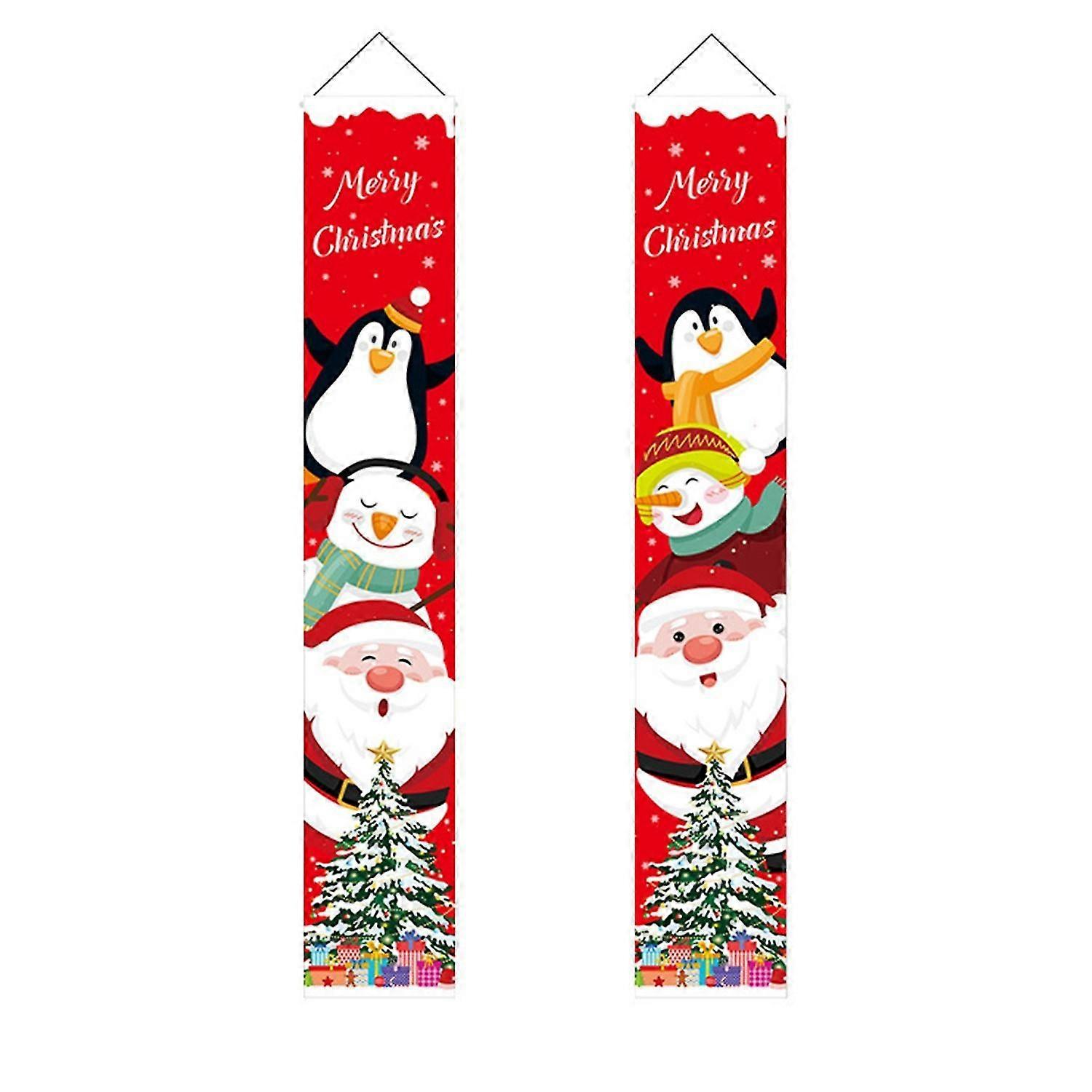 1 Pair Christmas Couplet Santa Snowman Penguin Print Reusable Rectangle Holiday Decoration Xmas Porc