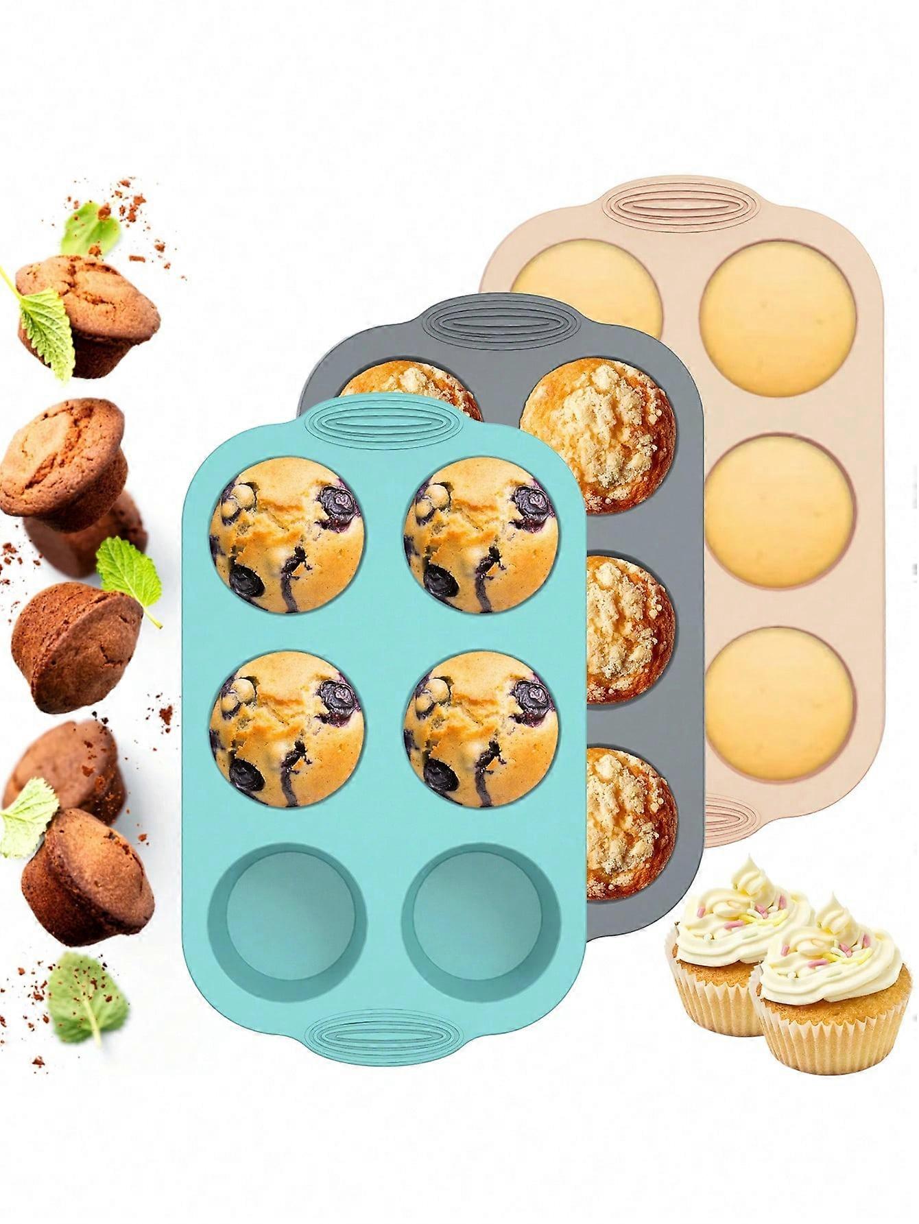 1 Pc Silicone Muffin Pan 6-Cavity Baking Tray Non-Stick Temperature Resistant Muffin Baking Mold 3-Color Muffin Baking Tray