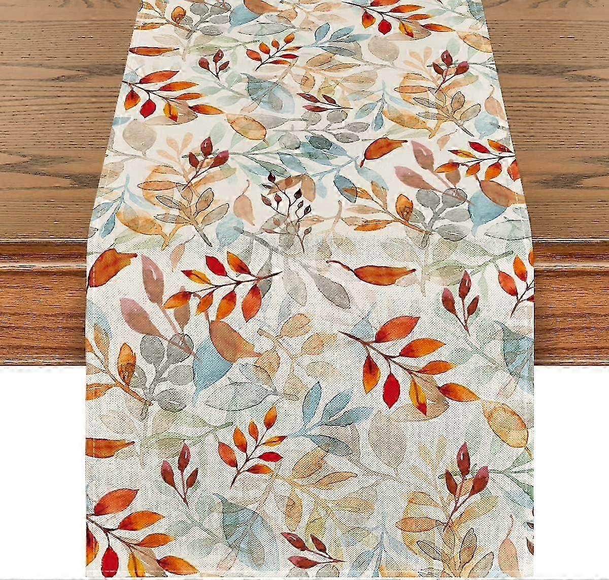 1 pcs Beige Eucalyptus Leaves Fall Table Runner, Seasonal Autumn Kitchen Dining Table Decoration for Outdoor Home Party 33x183cm