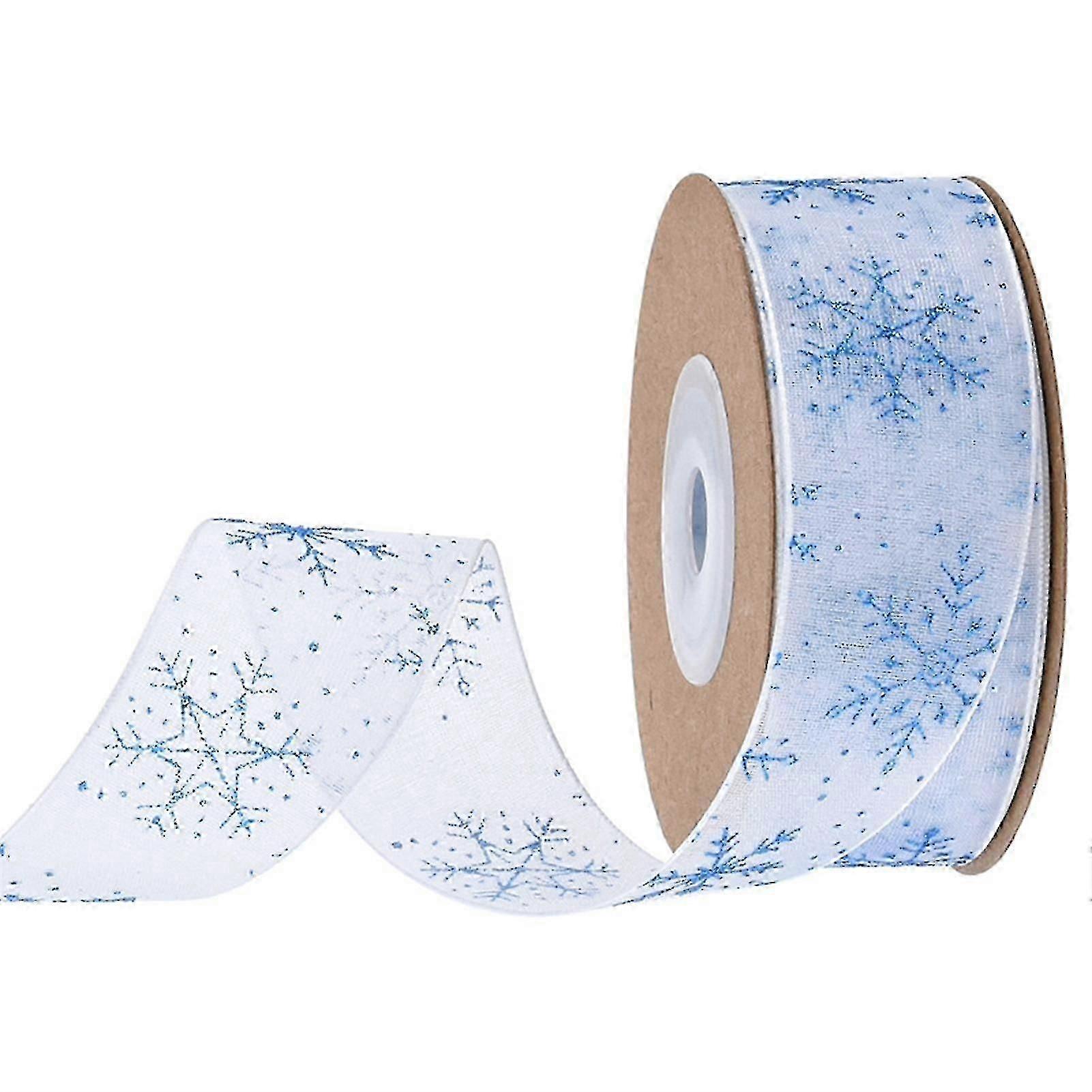 1 Roll 10m Christmas Ribbon Snowflake Pattern Foldable Decorative Xmas Packaging Decoration Ribbon For Christmas