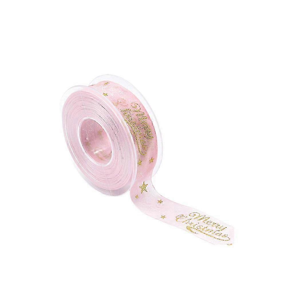 1 Roll of 20M Christmas Ribbon Hot Stamping Pentagram Gift Packing Ribbon DIY Accessories Glitter Decoration for Christmas Party Home Office (Pink)