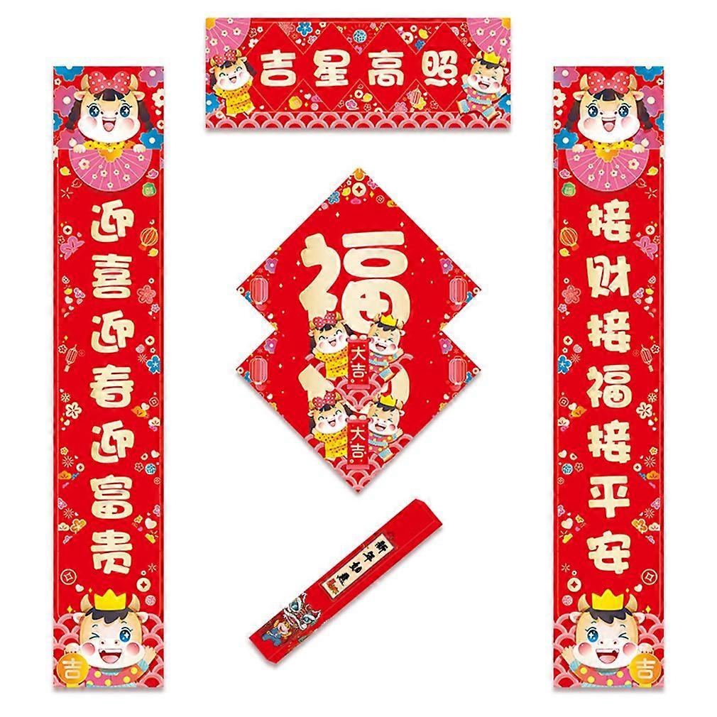 1 Set Cattle Year New Year Creative Spring Festival Couplets 1.2m Cartoon Pattern Wishes Door Stickers