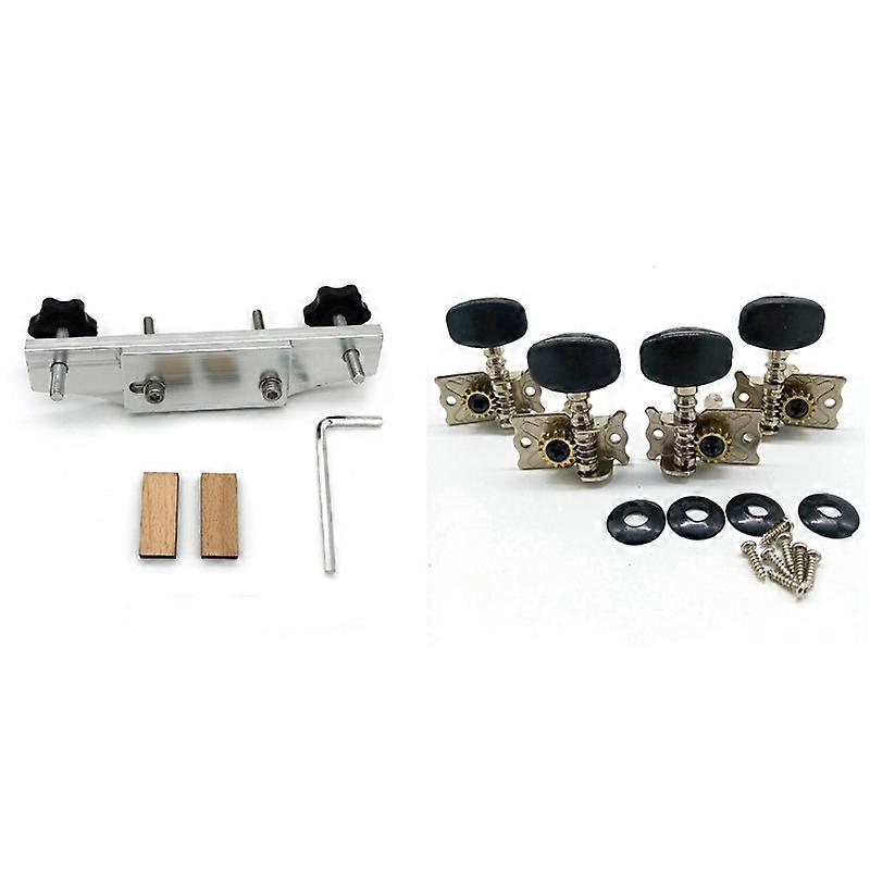 1 Set Tuning Pins Tuning Keys 2R 2L & 1X Metal Guitar Bridge Clamp Stainless Steel Guitar Bridge Gluing ToolSet2: 1 x Guitar Bridge Clamp + 4 x Tuning Pins (2R 2L)Description: 100% Brand New & High Quality4pcs 2R & 2L Machine HeadsCompatible with ukulele guitar and other 4 string guitar, bass guitarReplace old and broken tuning pins, perfect for tuningMounting screws are included1. Suitable purposes: guitar bridge terminal repair tools are suitable for different kinds of bridges.2. Guitar Maintenance Kit: The product is guitar bridge replacement and installation tool, guitar maintenance kit.3. Easy to Install: With 2 threaded external holes, the tool is easy to install and operate.4. Extra cork gasket: The extra cork gasket allows for easy fixing.5. Improved Flexibility: The internal slots are long from 14mm to 62mm, which also improves the flexibility of the clamp. Tuning Pegs (2R 2L) Size: 31x38.6x30.5mmMaterial: Aluminum Alloy/Metal + PlasticColor: Silver/Silver + BlackPackage Contents:1 x Guitar Bridge Clamp4 x Tuning Pegs (2R 2L)Only the above package content, other products are not included. Note: Light shooting and different displays may cause the color of the item in the picture a little different from the real thing. The measurement error is +/- 1-3cm.