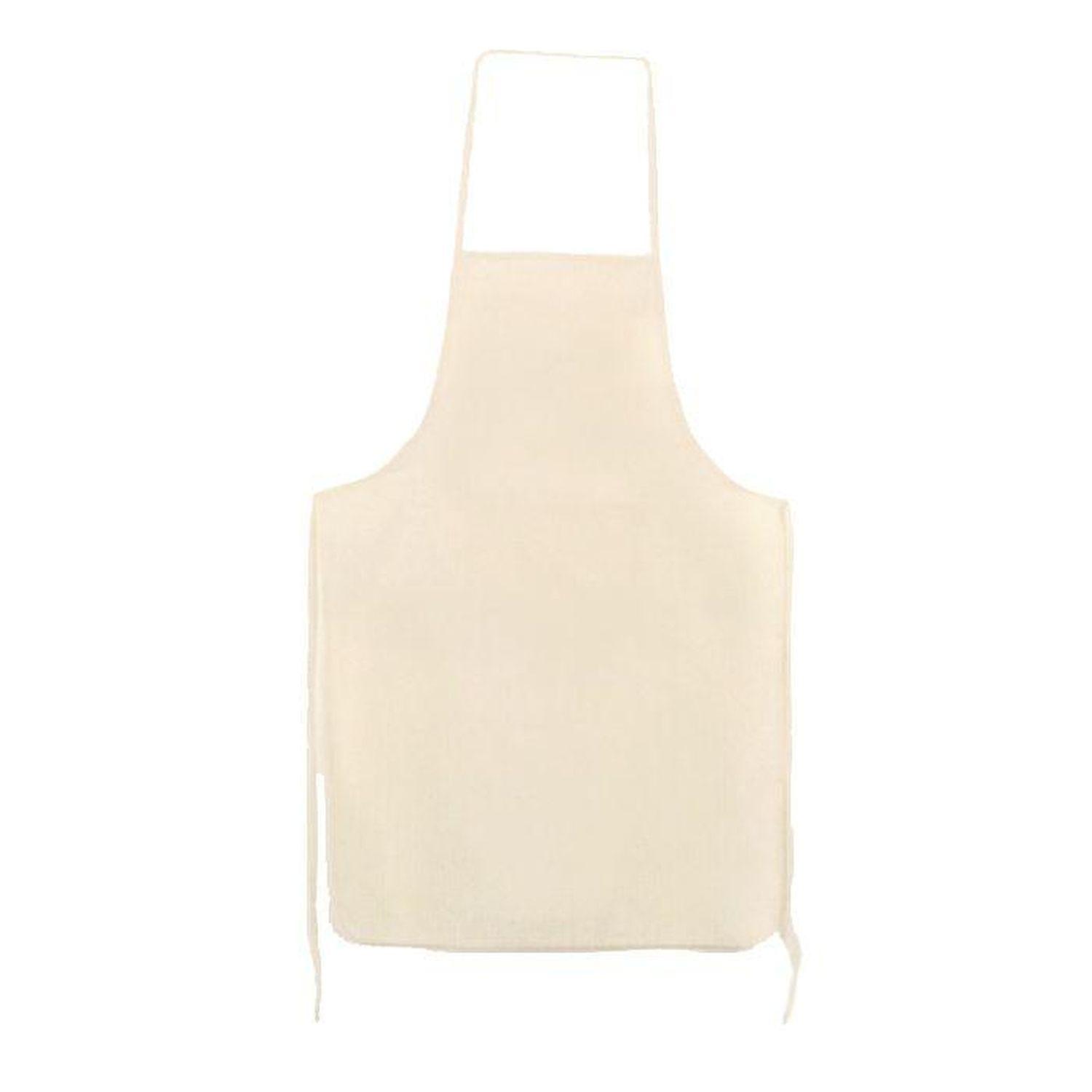 10 cotton adult aprons. This kitchen or DIY apron is off-white. Adult size (90 x 60 cm), it is made up of a string around the neck, a string around the waist and a small ventral pocket. Indispensable for all messy jobs, from painting to ceramics, markers to creative cooking