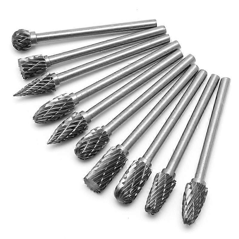 10 Pc 1/8" 6mm Tungsten Carbide Milling Cutter Rotary Velcro Set CNC Engraving Bit Tool
