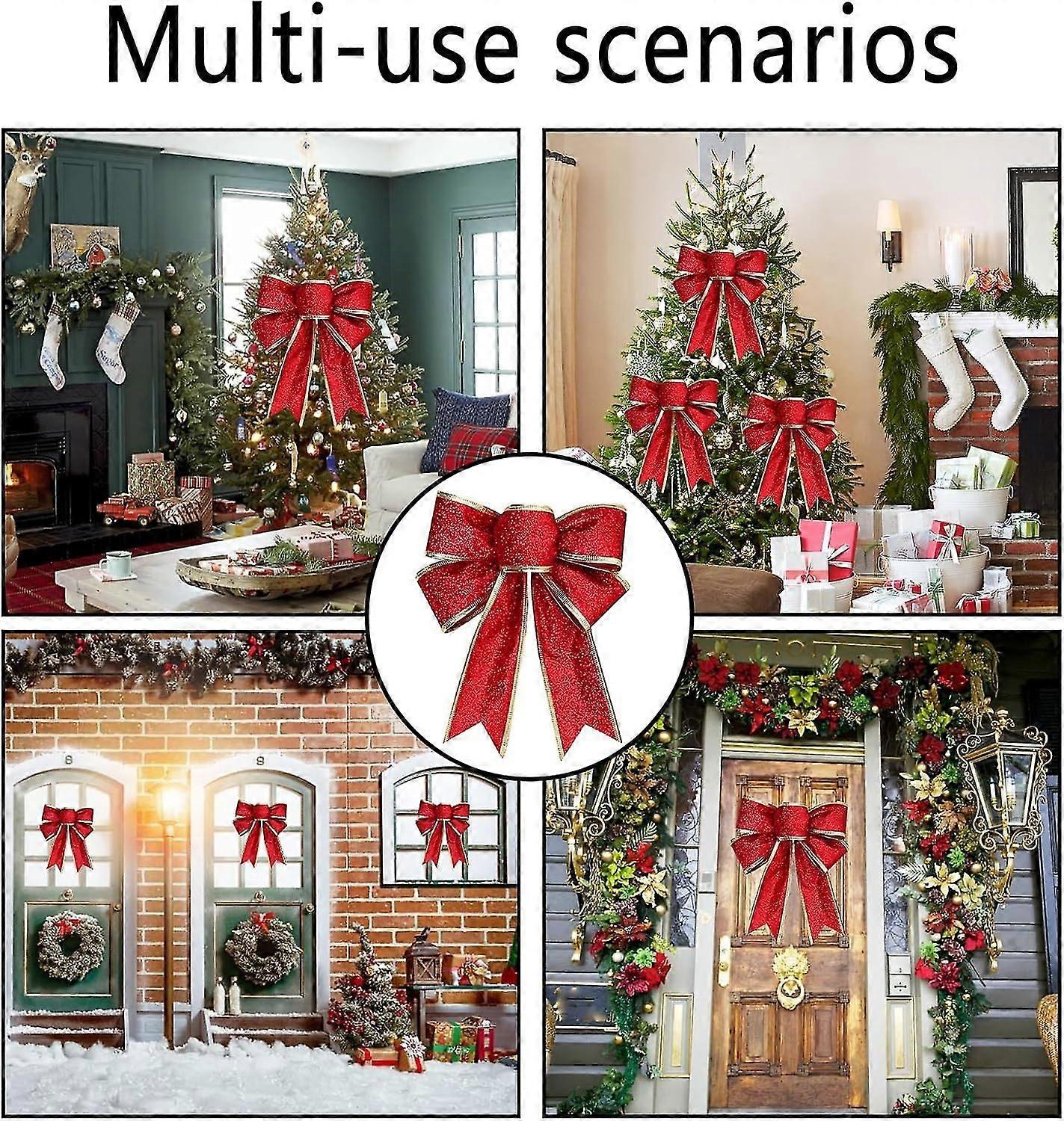 10 Pcs Christmas Bows Glitter Christmas Tree Bows Christmas Tree Decoration for Christmas Wreath Wedding Car