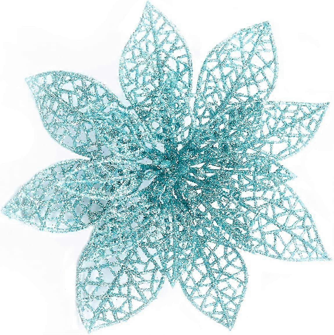 10 Pcs Light Blue Glitter Poinsettia Flowers Christmas Tree Ornaments, Glitzy Poinsettia Bushes Christmas Decorations for Christmas/Holiday/Seasonal/W