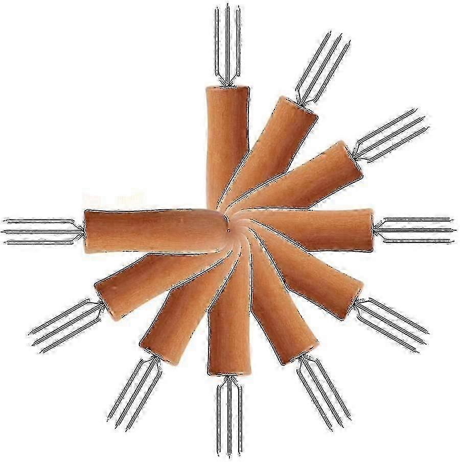10 Pcs Stainless Steel Corn Holders, Corn On The Cobb Holders With Long Oak Wood Handl Compatible Kids And Adults Home Cooking And Bbq