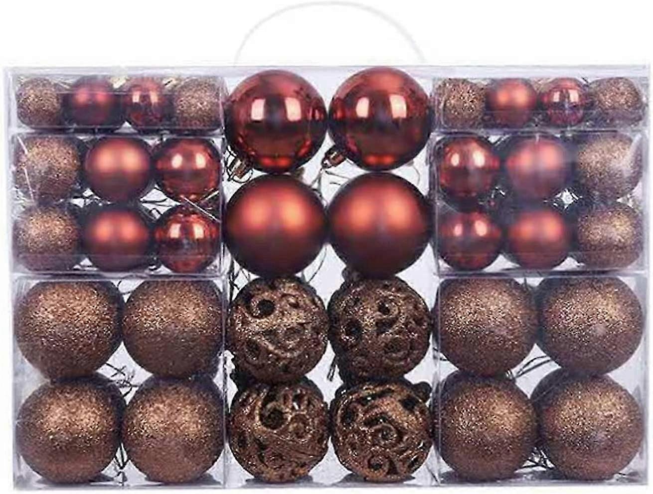 Material Made of healthy and unbreakable plastic, so you can freely decorate your home or other occasions. You can also use your own to use these ornaments. Ideal for Christmas. It is our wishes that provide the best Christmas decoration products and gifts for you and your family. Trendy Christmas ornaments Farewell to old-fashioned style! These sparkling handmade ornaments are well suited for the Christmas tree. Color-painted, high-brightness balls make the festival beautiful, harmonious and joyful. A colorful appearance, perfect for decorations, nicely enhances the party atmosphere of the party. Dimensions Each Christmas ball measures: 3-6cm. All the balls come with a pre-tied hanging cord and are easy to hang on the Christmas tree. This pack contains 100pcs copper and gold Christmas balls. The glossy, matte, glittery multi-finish, frosted and marbled will enrich your Christmas tree. Wide range of applications Ideal for interior decoration: Christmas, wedding, engagement, anniversary, party, hanging ornaments on branches, decorating a table, around balustrades, entertaining in different lengths, etc. Safety Products that are safe for children and pets - plastic products. Unlike traditional glass, if crushed, these ornaments do not cause damage. So they are very safe for your children and pets of company. Great unbreakable ornaments for the garden and the house. They are recyclable. Color: Coffee color Christmas tree balls in different sizes - Christmas tree balls for Christmas trees - Glass Christmas tree decorations How about a beautifully decorated Christmas tree for a party? Christmas tree balls for your Christmas tree are a perfect addition to existing Christmas tree decoration! Elegant: The beautiful Christmas tree balls in different designs are particularly elegant and are a real eye-catcher on the Christmas tree! Traditional: The perfect tree decoration for the Christmas tree. A nice addition to any Christmas tree decoration! Decorative: Glass Christmas tree balls complete the overall picture of decorated Christmas tree and Christmas decoration! Style: Thanks to their different matt and glossy designs, Christmas tree balls can be attached to the tree in a variety of ways! Product features: Dimensions: 3, 4, 6 cm Color: different shades of green; silver colored pendant lamp Material: plastic