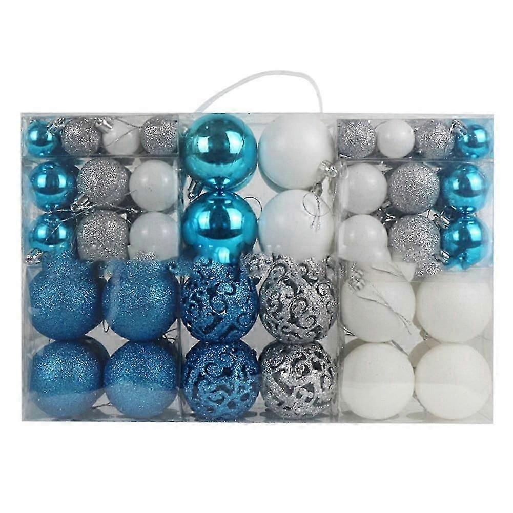 100pcs Christmas Baubles Shatterproof Balls Christmas Tree Decoration Ornaments, Blue+White+Silver