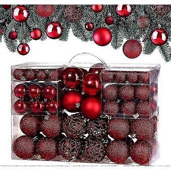 100Pcs Christmas Tree Baubles Set | Xmas Decorations Balls With Hooks | 32x 30mm 36x 40mm 32x 60mm | Red