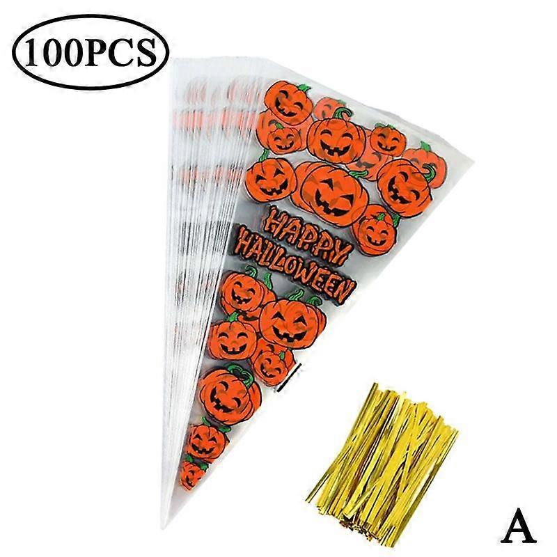 100Pcs Halloween Cone Bag Pumpkin Bat Spider Triangle Candy Bag Halloween Gift Favors Packaging Bags Treat or Trick Candy Pocket