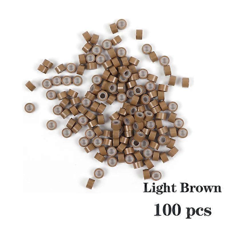 100pcs Silicone Micro Rings Beads For Hair Extensions Beige Black 5x3x3mm Micro