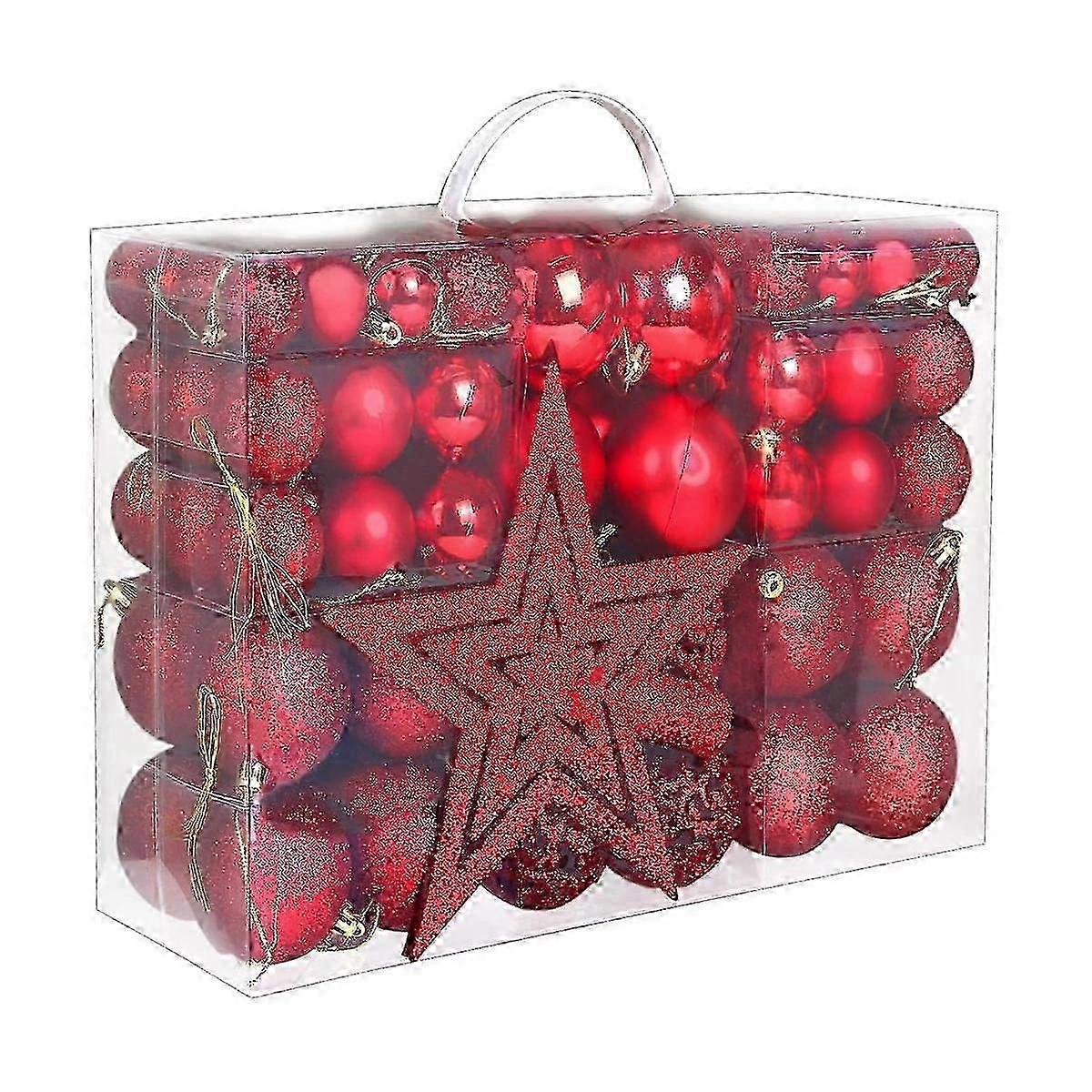 101Pcs Shatterproof Red Christmas Baubles, Hanging Ball Ornaments for Tree Decoration