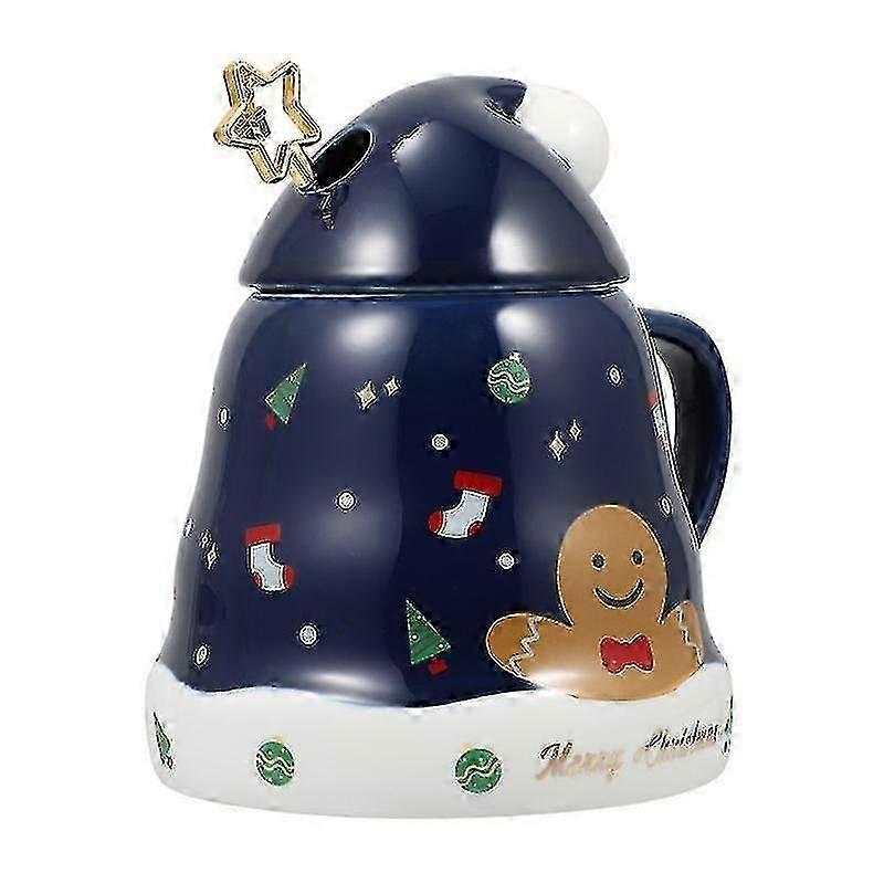 10.5X10.5X12.5CM Dark Blue Mugs 1 Set Christmas Gift Mug Santa Claus Elements Ceramic Cup With Spoon