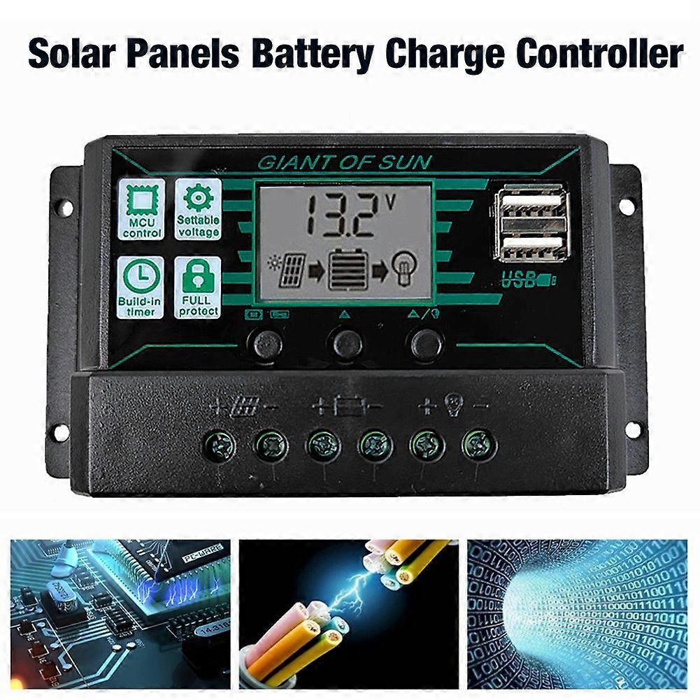 Bullet points:1, MPPT + PWM coexist function: the solar charge controller automatically adjust to the regulation of the charging mode (MPPT/PWM mode), and automatically adjust the charging according to the battery type.2, A little tip: for example, lithium batteries need to use the MPPT charging method, and those that can charge 12V batteries use the PWM charging method.3, LCD display: the solar charge controller is equipped with a large LCD screen, charge and discharge current display, cumulative power generation and discharge power query, temperature display, lighting control + delay control; adjustable charge and discharge parameters, with functions such as power-off memory.4, Dual ports: The solar charge controller has two USB ports, the maximum current is 2.5A, and supports with mobile phone charging.5, Multiple functions: The solar charge controller function is equipped with all necessary safety devices, the control parameters of the system are adjustable, easy to set up and operate. Built-in short circuit protection, open circuit protection, reverse connection protection and overload protection. Counter-current protection, low heat generation, self-recovery function. Description:Solar charge controller is suitable for solar green light, solar lamp, advertising board, home solar power generation, marine solar power generation and outdoor residential solar power generation. Features:Real-time display of temperature, charge current and discharge current. Current MPPT autofocus charging, high charging efficiency, charging process does not stop detection, two-way focus tracking. Charge 12V /24V lithium battery, super wide adjustable charge and discharge. The minute is adjusted when the output is off, which is more convenient (there is no adjustment when the market is available only). Built-in overheating, overcurrent, short circuit, open circuit protection, fault elimination, automatic driver recovery. Bi-directional MOS tube surge protection circuit, high power charging mode, ultra-low heat. R5.0 solar charging DC plug, R5.0 DC lamp DC output DC plug, easy to connect. Specifications:Name: LCD Solar ControllerMain Color: BlackMain Material: ABS Voltage: DC 12V/24V Rated Current: 10A/20A/30A40A/50A/60A/100A (Optional)Maximum PV Voltage: 50V Display Screen、LCD ScreenSelf Usage: lt; 10MAnload Protection: 14.4V/28.8V Float Charge Charge: 13.7V/27.4V Charge Recovery Voltage: 12.6V/25.2V Over Discharge Protection: 10.7V/21.4V Over-discharge Recovery: 12.6V/25.2V USB Dual Output: 5V/2A (Mobile Phone Charging, etc.)Operating Temperature: -35°C-60°C12V fit for 18V solar panel, 24V fit for 36V solar panelProduct Size: About 150*78*35mm / 5.9*3.1*1.4inProduct Weight: About 155g / 5.5ozPackage Size: About 200*100*90mm / 7.9*3.9*3.5in Package Weight: About 155g / 5.5oz 12.0v Lead-Acid Battery Corresponding to:Float Voltage is set to: 13.6Recovery Discharge Voltage is set to: 12.6 Discharge cut-off voltage is set to: 10.712.8v lithium iron phosphate battery corresponding to:Float voltage is set to: 14.6Recovery discharge voltage is set to: 13.6Discharge cut-off voltage is set to: 11.01.1v lithium battery corresponding to:Float voltage is set to: 12.6Recovery discharge voltage is set to: 11.6Discharge cut-off voltage is set to: 9.6Feature:1. Always keep the battery in a state of fill voltage.2. Prevent overcharging of the battery.3. Prevent battery over-discharge.4. Prevent solar panel battery charging from being reversed at night.5. Reverse polarity for batteries6. Reverse Polarity for Solar Panels7. When the battery voltage is low, the controller automatically cuts off the load from the system. If the battery voltage returns to normal and the load restarts.8. According to the battery voltage level, the controller can automatically set the charging voltage, load voltage, load recovery voltage. (The parameter is default below 25 °CStan, locked by CPU procedure, can not adjust.)9. The controller automatically compensates the charging voltage temperature according to the changes in ambient temperature.10. Thunder ProtectionPacking List:1 x Solar Panel Battery Charge Controller1 x User Manual1 we accept Alipay, West Union, TT. All major credit cards are accepted through the payment processor's secure escrow.2 Note: Other payment information via this link: