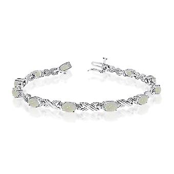 10K White Gold Oval Opal Stones And Diamonds Tennis Bracelet, 7"