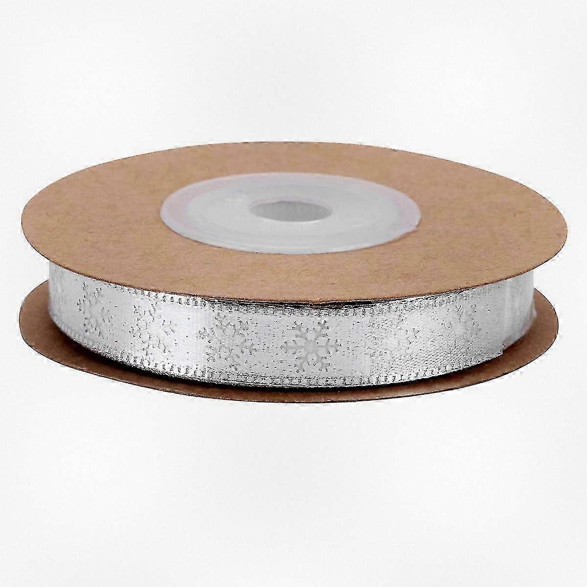 10m Silver Snowflake Design Christmas Fabric Ribbon for DIY Craft Projects