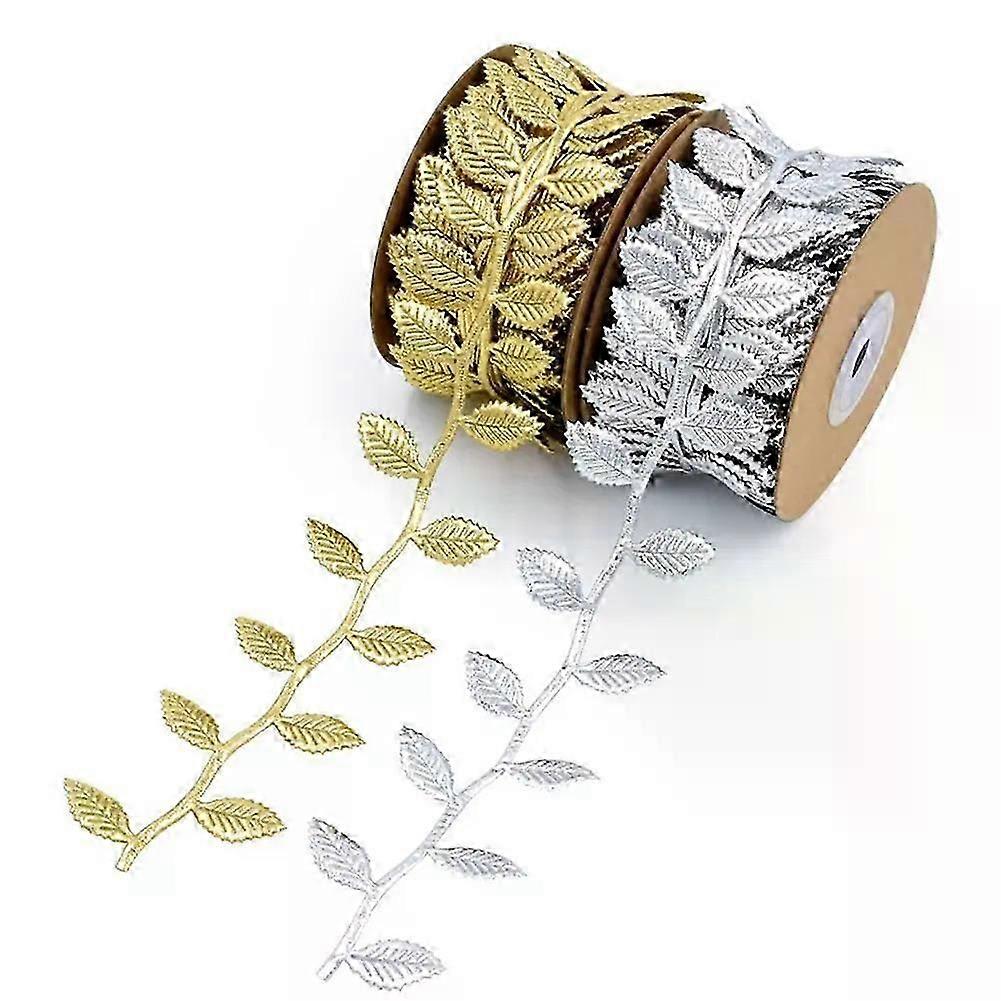 10M/Roll Gold Silver Leaf Wrap Ribbon Bows Home Party DIY Christmas Ribbons Handmade Wrapping Party Decor