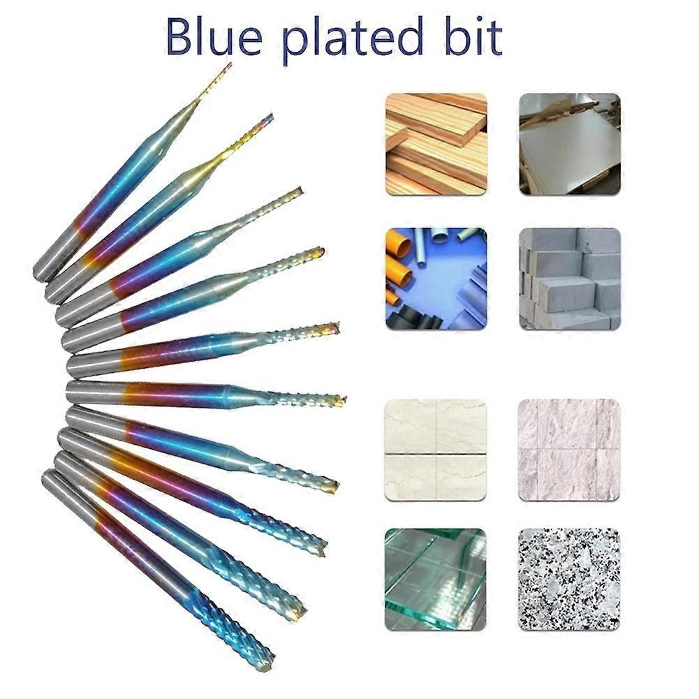 10Pcs Carbide Cutter Engraving Drill Set 0.8-3.175mm Shank CNC Cutters Suitable for PCB Taper Wood Cutter