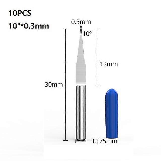 10Pcs Carbide PCB Cutters Engraving Milling Tools 10°/15°/20°/25°/30°×0.3mm for Color Acrylic Boards Hardwood PVC