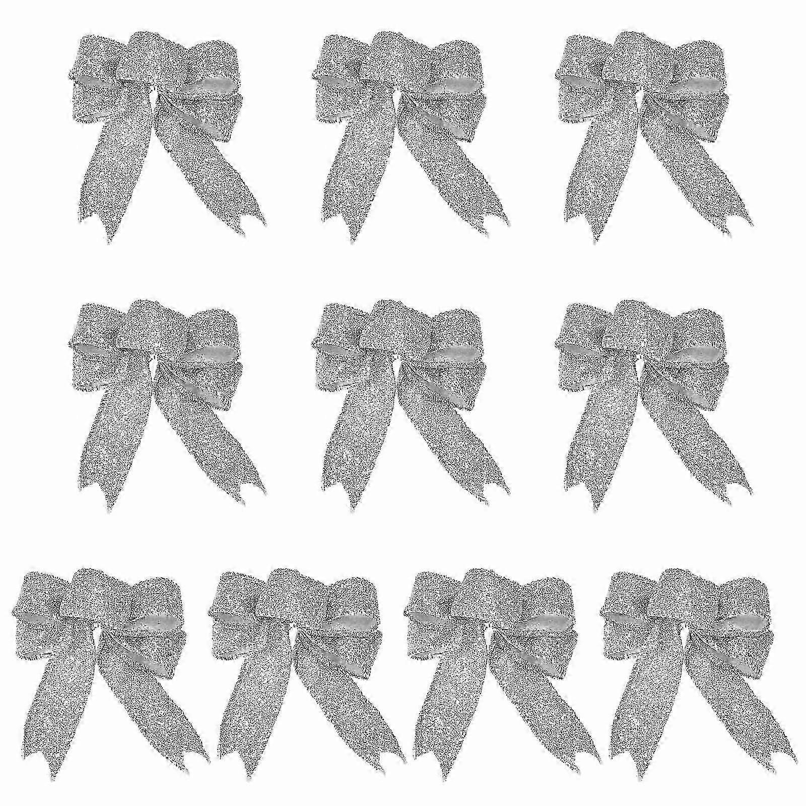 10pcs Christmas Bowknot Ribbon Glitter Bows Xmastree Decoration Christmas Tree